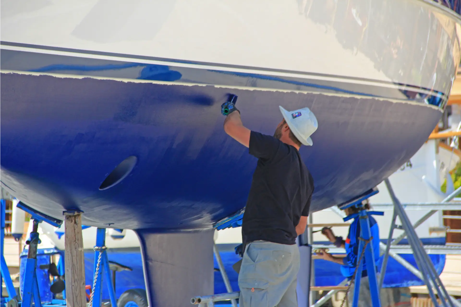 Applying bottom paint for a boat is one of the most important cosmetic maintenance steps a boat owner can take. Because boats spend most of the time in the water, they are constantly exposed to marine growth, such as algae, barnacles, and other organisms that attach to the hull. Without proper boat bottom paint, this buildup can increase drag, reduce fuel efficiency, and negatively impact the overall performance of the vessel. High-quality fiberglass boat paint helps create a protective barrier that prevents marine growth while also shielding the hull from corrosion, water intrusion, and long-term deterioration. Regular boat painting of the hull’s underside helps preserve structural integrity and extends the lifespan of the vessel, making it a crucial part of responsible boat ownership.